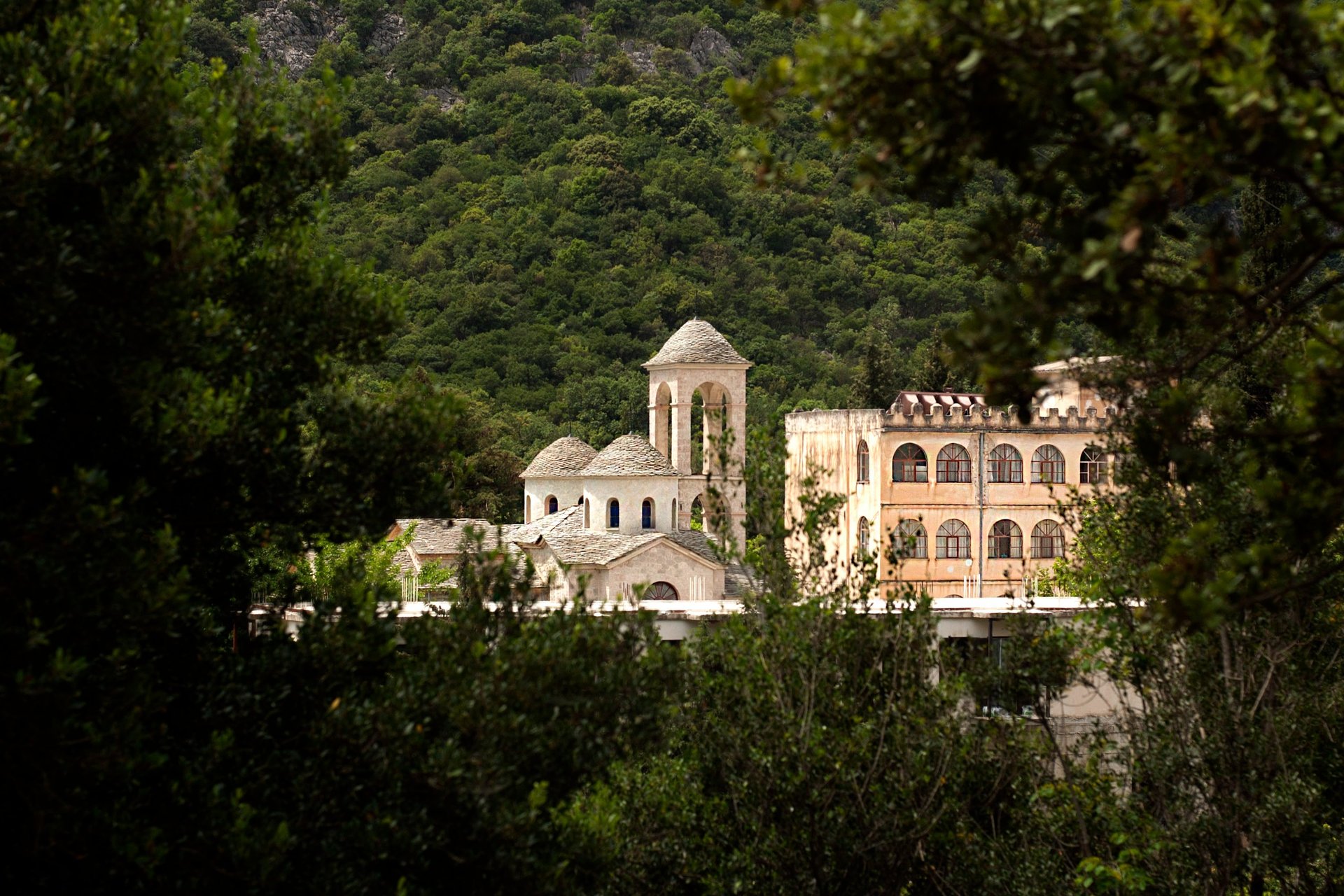 Eine alte Kirche und ein Gebäude, das als Kloster benutzt wird, inmitten dichter Bergwälder am Westrand der thessalischen Ebene. Man kann dort oben die Einsamkeit und Stille, die Klarheit der Luft und den Geruch der Natur förmlich schmecken. Ein Ort, um zur Ruhe zu kommen. Zu Gott zu kommen. Mit Ihm im Gebet zu leben. Sich von Ihm erfüllen zu lassen. Im Kloster Agiou Georgiou wird das spürbar. Greifbar. Erlebbar.
