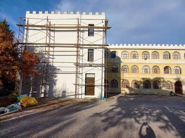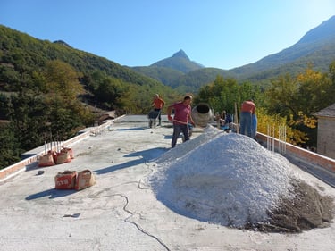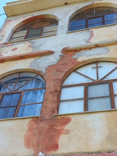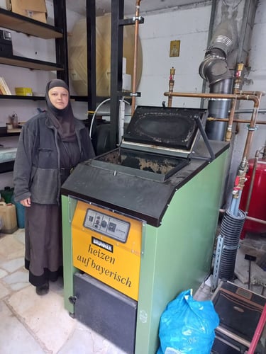 „Der erste Besuch. Ich kam Mitte Oktober 2009 mit einem Autobus aus Saloniki, und Gerontissa holte mich von der Haltestelle ab – du meine Güte, wie herzlich und offen war der Empfang, und wie überrascht war ich, als ich zum ersten mal das Kloster sah... Traumhaft gelegen, mitten in den Wäldern, ein wenig wild und doch ge- und beschützt – im tatsächlichen wie geistlichen Sinn. Eine einnehmende, wunderbare, lichte Atmosphäre. Aber, trotz der optisch mir vertrauten unfertigen griechischen Häuser, war ich doch sehr erschrocken, als ich, aus dem Auto ausgestiegen und ein wenig umhergehend den Zustand der Gebäude sah. „Abreißen“ dachte ich bei mir, und „neu bauen“. Und dann „Sanierung – was für eine Schnapsidee!“ Abreißen! bemerkte ich auch gegenüber Gerontissa, die mich ganz erschrocken ansah und sofort sagte „niemals!“. Welche Schäden! Dazu ein billig gebautes Haus, nicht einmal geplant für ein Kloster. Dazu der verrottende Neubau. Ich war wirklich schockiert.